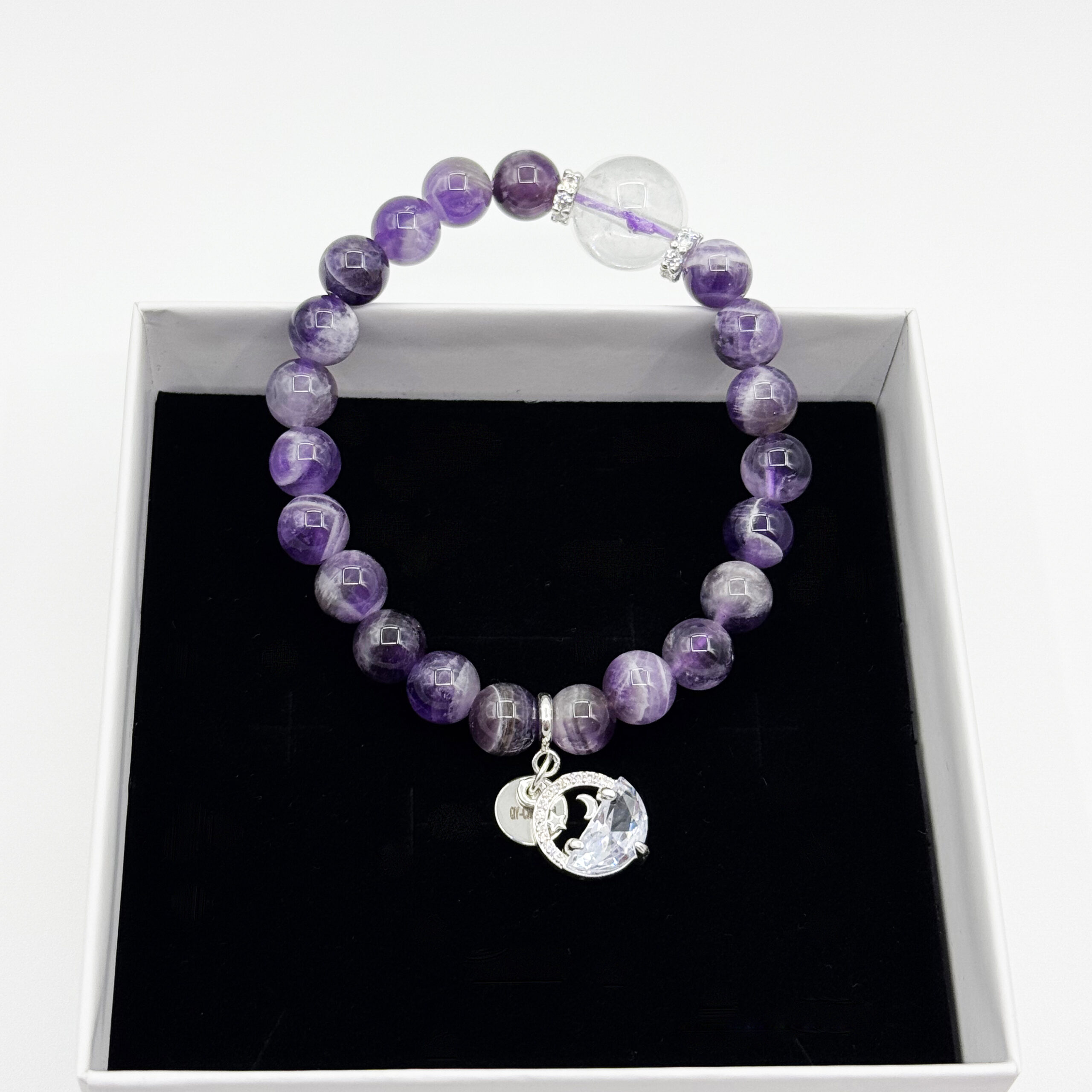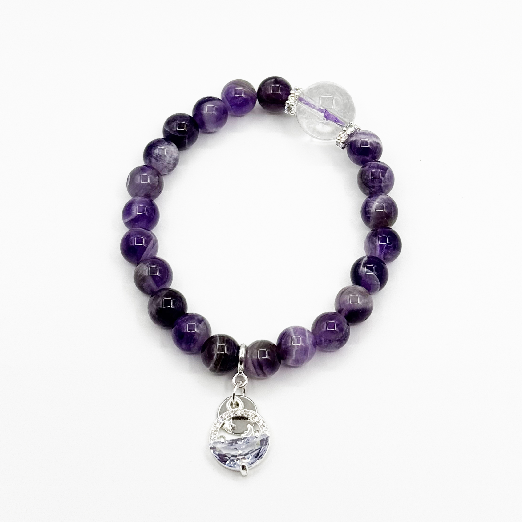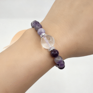 For wearers who prefer mysterious, elegant styles and crystal energy, it is an eye-catching choice for daily matching. The textures and symbolic meanings of amethyst and clear quartz complement each other perfectly—not only showcasing an ethereal and elegant aesthetic, but also embodying beautiful expectations for spiritual wisdom and pure energy. Whether used to add a touch of romantic mystery to daily outfits or given as a heartfelt gift, Amethyst & Clear Quartz Moonlight Whisper Bracelet can present you with a distinctive style charm through its unique crystal combination and moonlight pendant design.