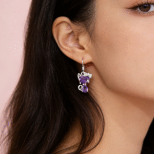 Who could say no to this amethyst kitten earring that’s equal parts sweet and edgy? The polished silver-plated finish boasts a crisp, luminous sheen—it resists tarnishing and fading, so it stays sleek even with daily wear. The chubby kitten’s body is set with rich purple zircon stones, whose vivid, crystal-clear glow instantly amps up the vibe; a tiny cluster of clear zircon “bow” sits atop its head, adding playful charm. Lightweight enough for all-day wear, these drops pair perfectly with frilly dresses, casual hoodies, or edgy streetwear—they’re the perfect “cute secret” to elevate any outfit. Equal parts girly and polished, this is your new go-to everyday favorite!