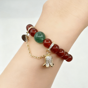 For wearers who love Christmas-inspired dynamic and classic styles and crystal energy, it is an eye-catching choice for daily matching or gifting during the Christmas season. The colors and symbolic meanings of green crystal and red agate complement each other perfectly—not only showcasing a Christmas-exclusive distinct and elegant aesthetic, but also embodying beautiful Christmas expectations for vitality and hope, passion and tenacity. Whether used to brighten outfits during the Christmas season or given as a unique Christmas gift, Emerald Crystal & Red Agate Christmas Bell Charm Bracelet can present you with a distinctive Christmas style charm through its unique crystal combination and Christmas bell design.