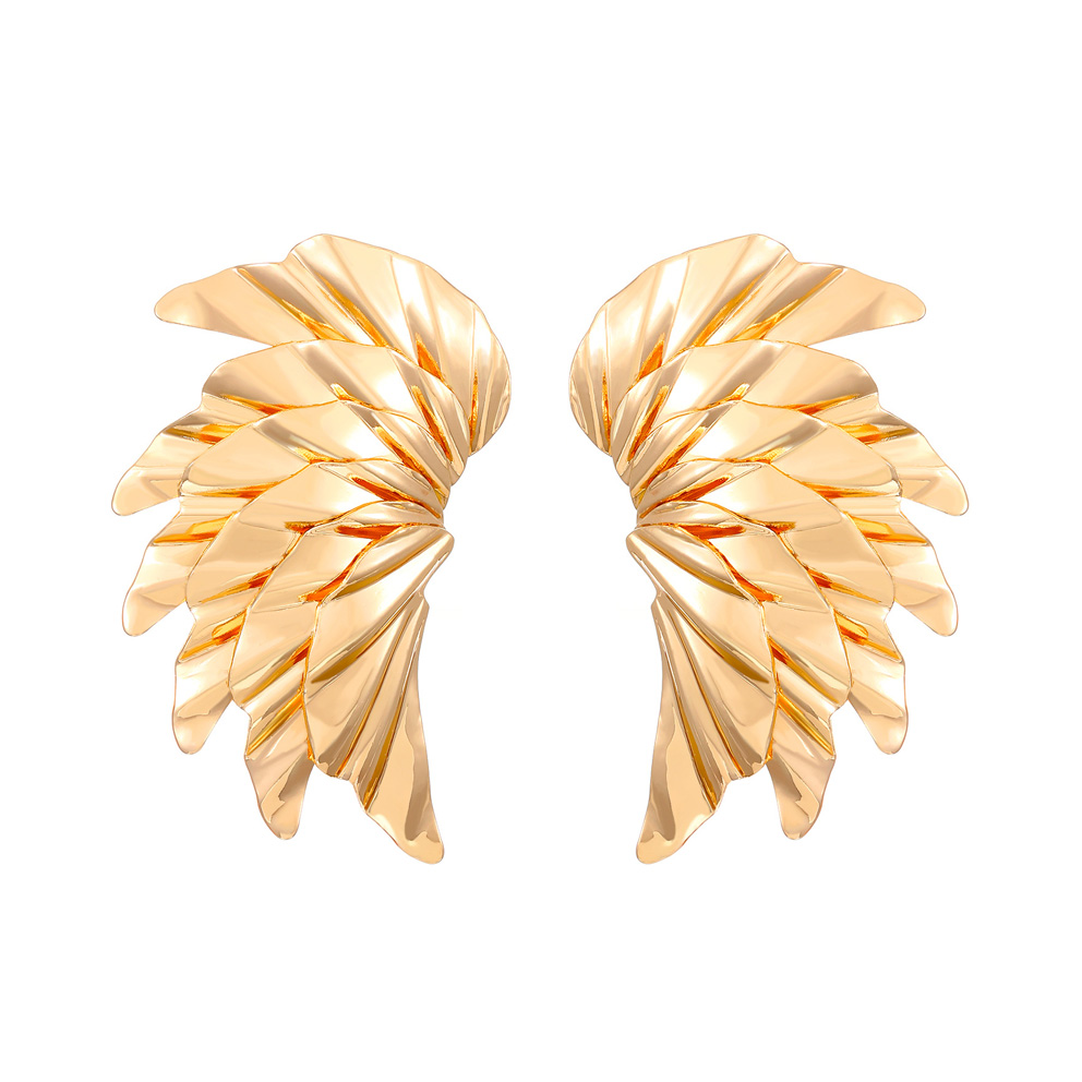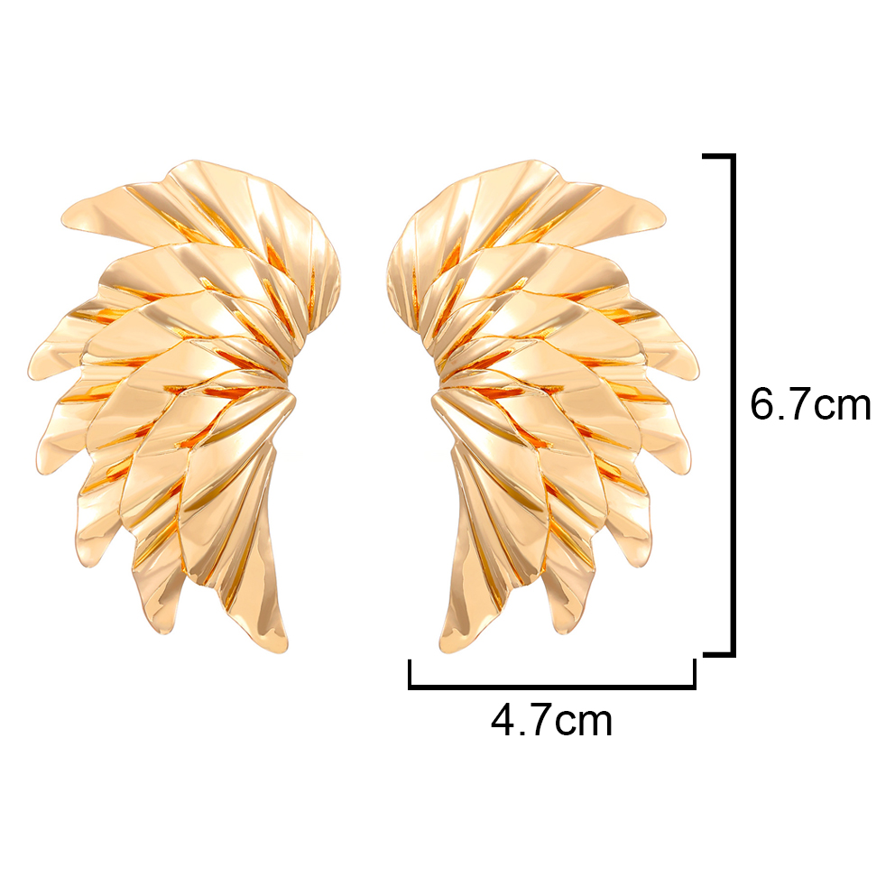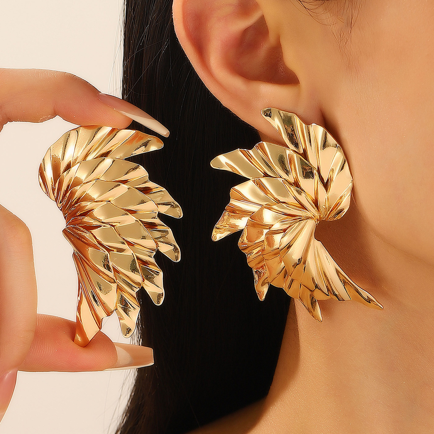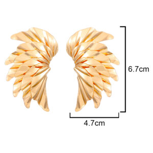 Inspired by wings, these stud earrings feature a highly three – dimensional design. The metal is meticulously carved into overlapping feather – like pieces. Each piece is finely polished to a mirror – like smoothness, reflecting a dazzling golden glow under light, showcasing a luxurious texture. With a unique and artistic shape, wearing them is like adding a pair of lively wings to the ears, exuding both elegant and romantic charm while maintaining a sense of fashion and individuality. Whether for important occasions or daily wear, they can instantly become the center of attention, making them excellent accessories for demonstrating unique taste.