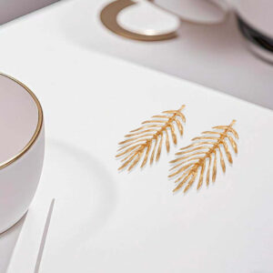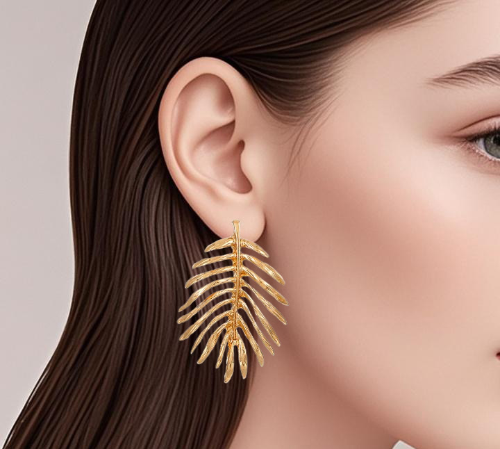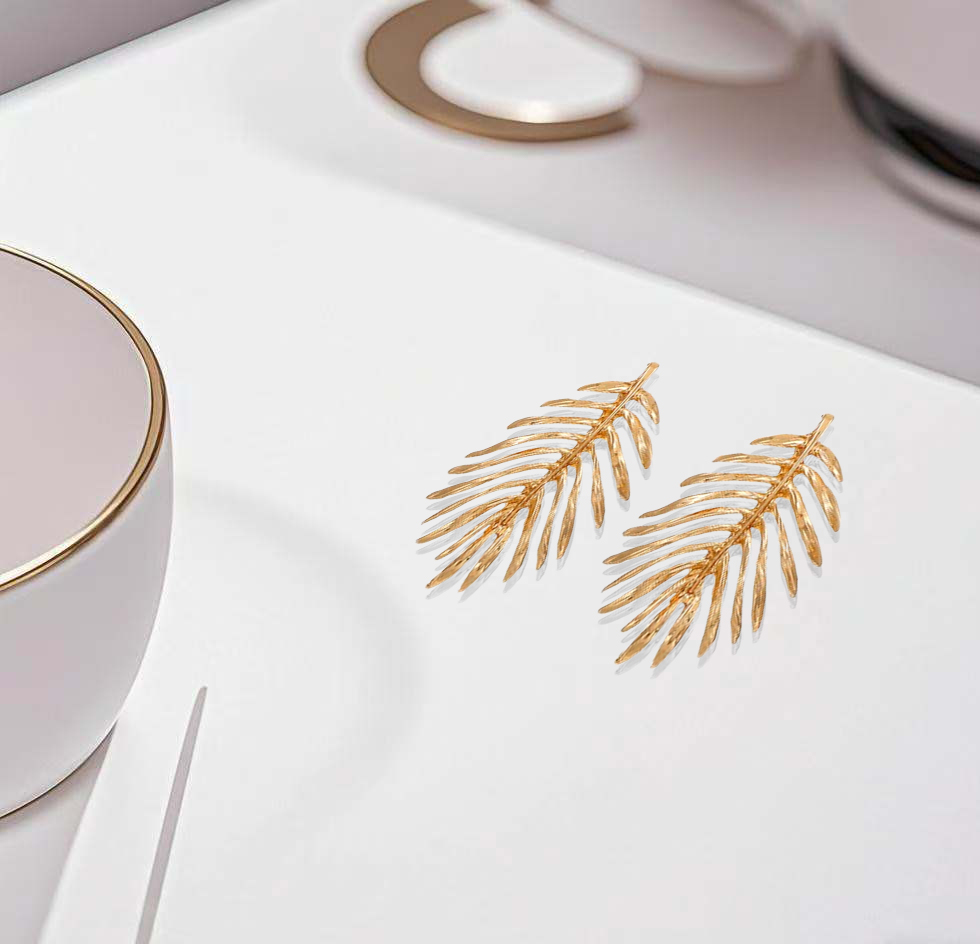 Crafted with exquisite detail, these earrings feature a delicate leaf motif in luxurious gold plating. The fluid, natural lines and meticulously sculpted textures create a strikingly lifelike effect.