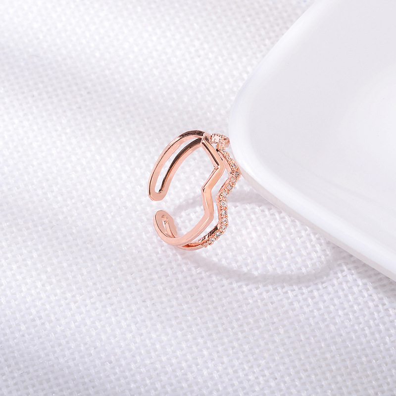 Style: This rose gold – plated wave – shaped open ring with zircons blends romantic elegance and sparkling glamour for a chic, modern look.