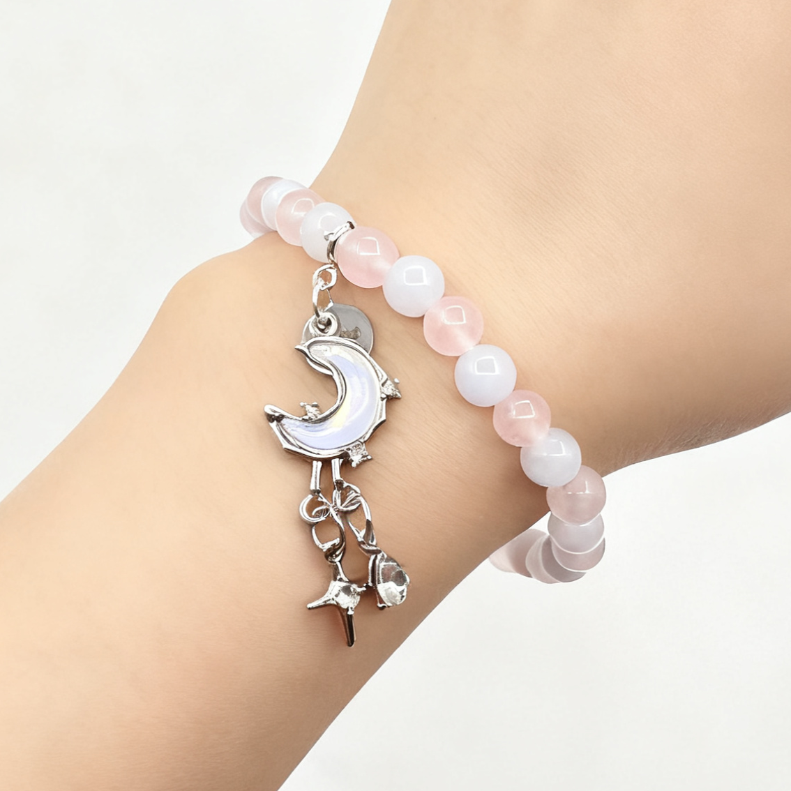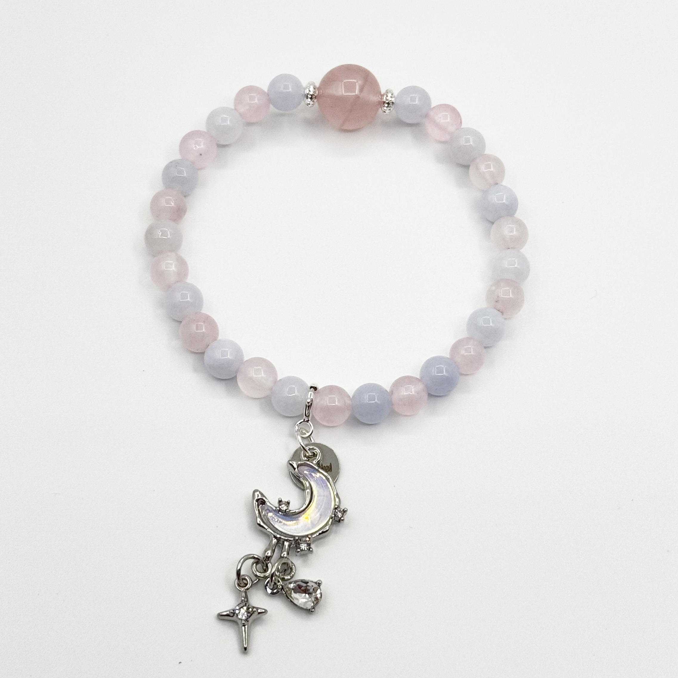 Rose Quartz & Blue Crystal Lunar Whisper Bracelet is an accessory full of tenderness and dreaminess.