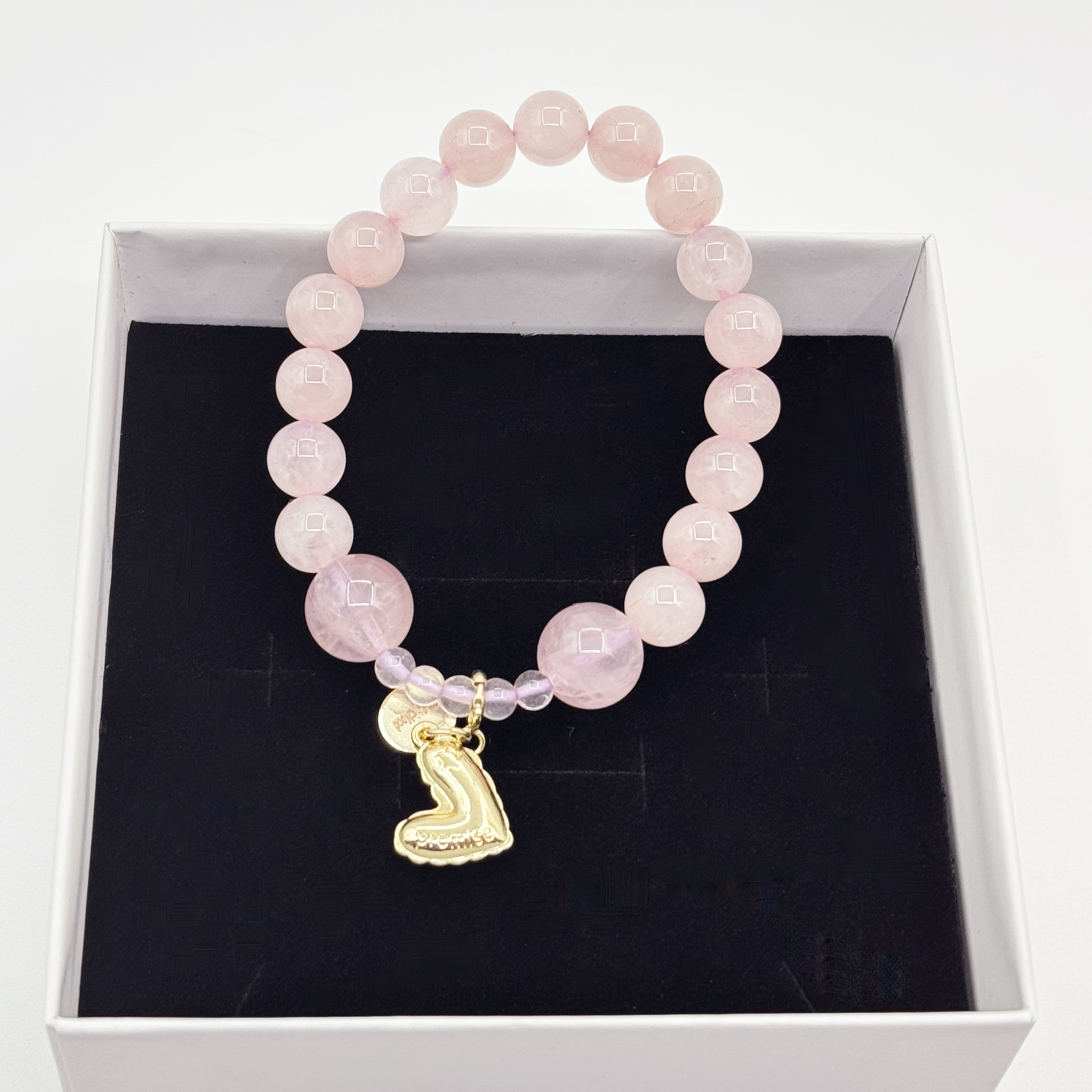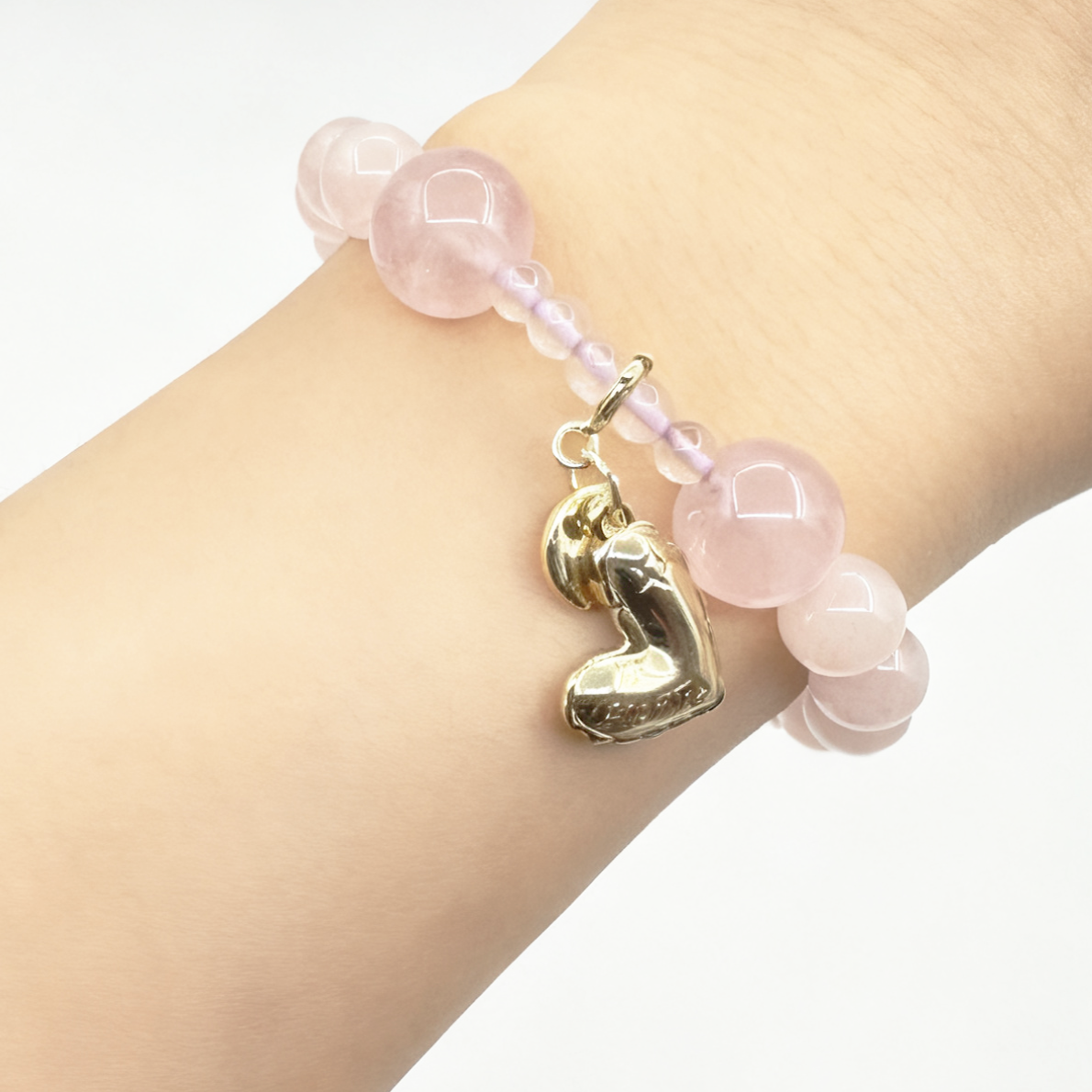 For wearers who love sweet, romantic styles and crystal energy, it is an eye-catching choice for daily matching. The softness of the rose quartz complements the delicacy of the gold-plated jewelry perfectly—not only showcasing a fresh and elegant aesthetic, but also embodying beautiful expectations for love, tenderness, and sincere promises. Whether worn as a romantic accessory for oneself or a warm gift for others, Rose Quartz Heart Promise Charm Bracelet can interpret your unique style story through its distinctive rose quartz material and heart-shaped design.