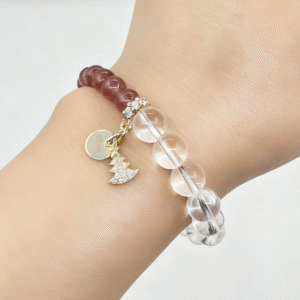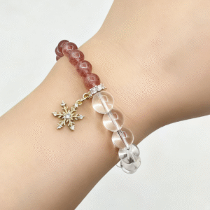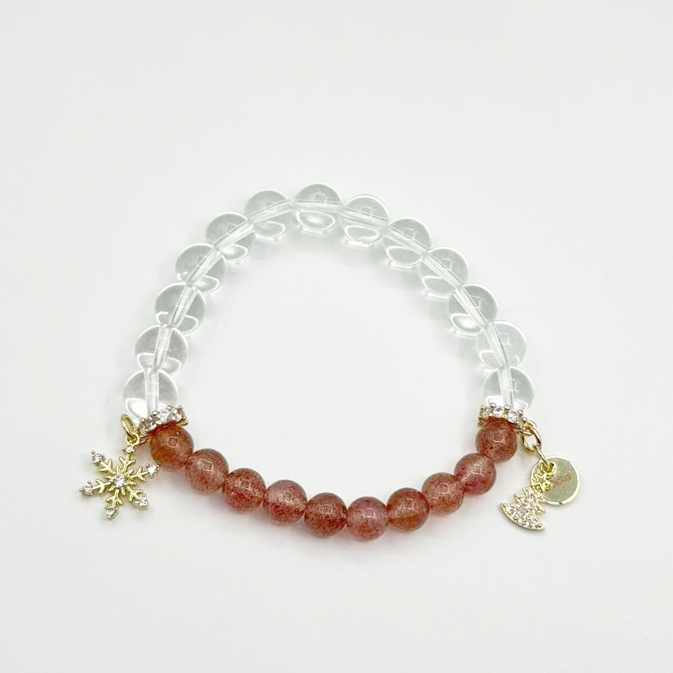 Strawberry Quartz & Clear Quartz Christmas Snowflake Tree Bracelet is an accessory full of Christmas romantic atmosphere.