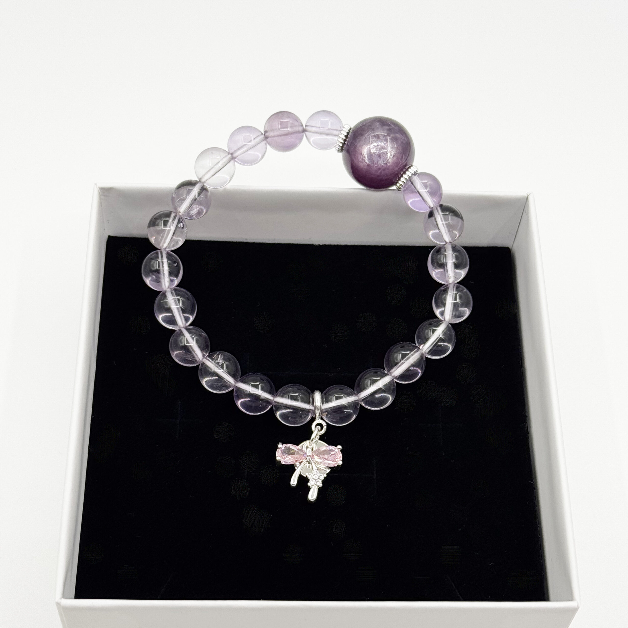 Transparent Amethyst & Mica Butterfly Whisper Bracelet is an accessory brimming with dreaminess and agility.