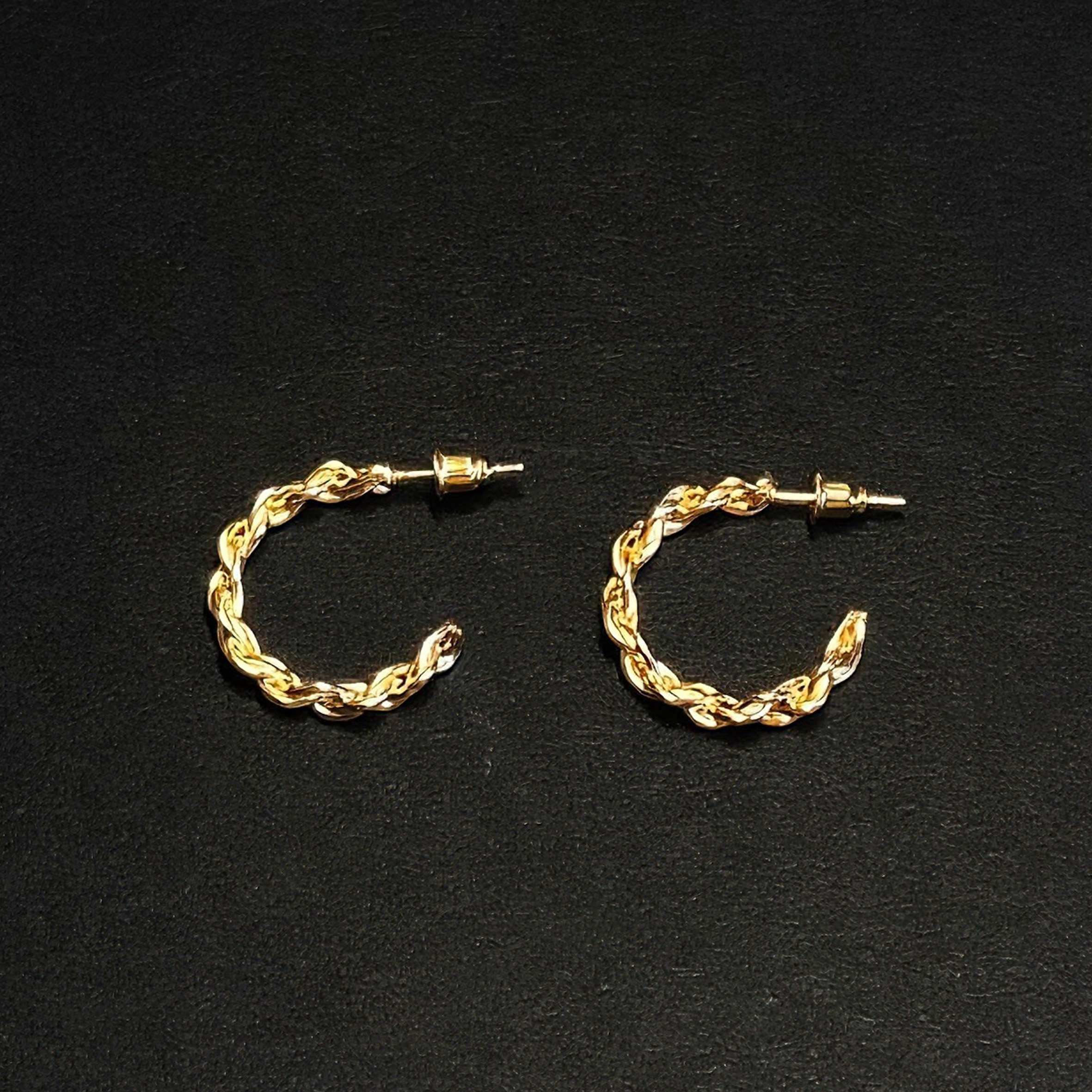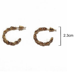 With the classic C – shaped outline and delicate twisted braided patterns winding around, they exude a flexible rhythm under the light. The gold – plating endows them with a rich metallic luster. Small, exquisite yet full of ingenuity, they fit the minimalist style for daily commuting and blend into the relaxed vibe of casual gatherings. They add unique fashion to the ears and quietly enhance the detailed texture of the overall outfit.