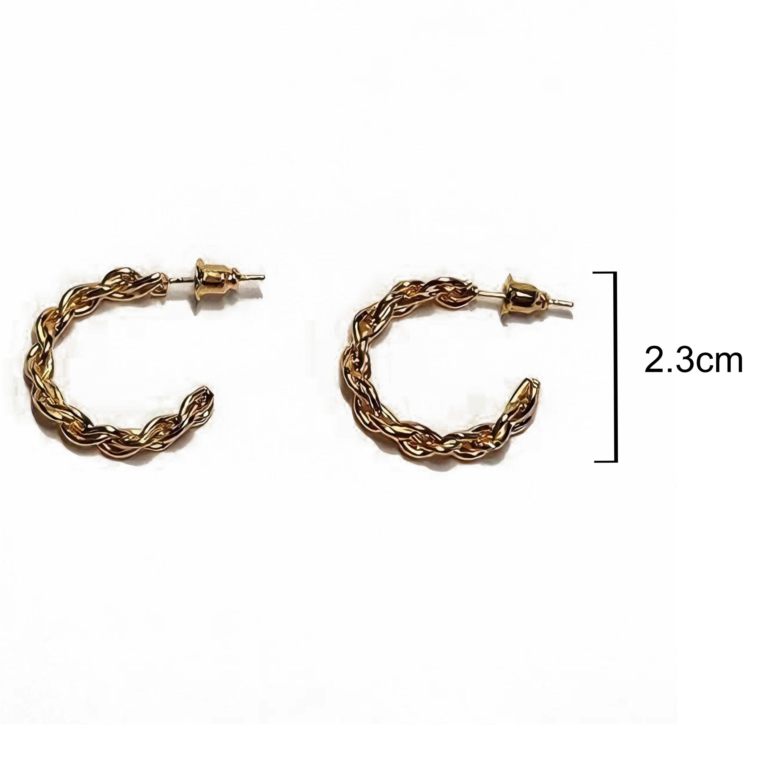 Twisted Braided Gold Plated Small Hoop Earrings Diameter 2.3cm