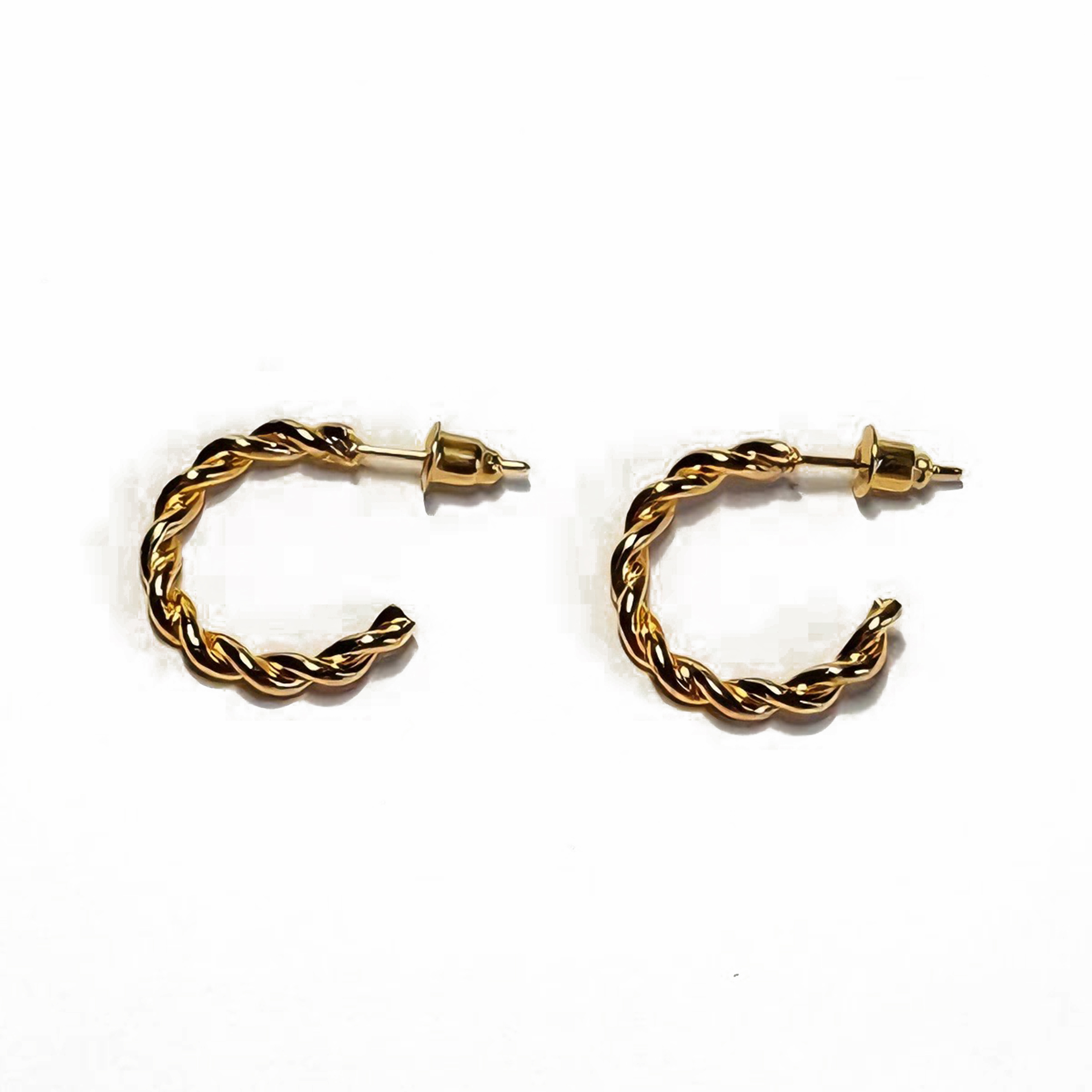 With the classic C – shape as the outline and unique twisted patterns winding around, they exhibit a flexible rhythm under the light. The gold – plating endows them with a gentle metallic luster. Small, exquisite and not lacking in design sense, they can be cleverly integrated into both the simple outfits for daily commuting and the relaxed looks for casual gatherings. They add a touch of unique fashion to the ears and easily enhance the detailed texture of the overall match.